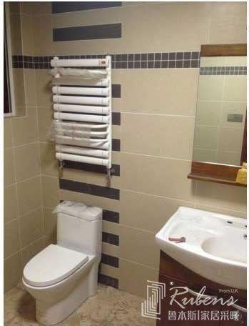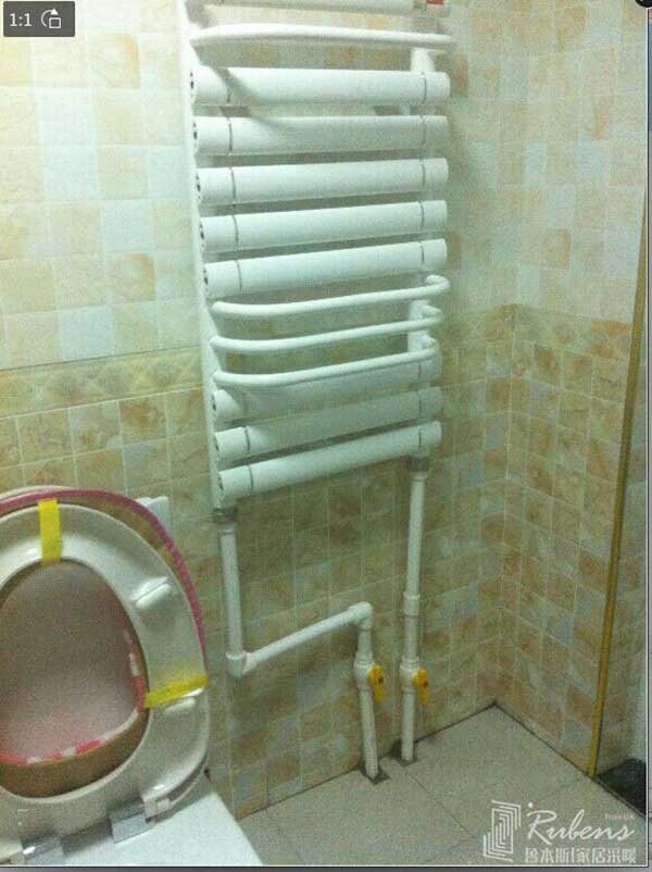 衛(wèi)生間小背簍暖氣片安裝效果圖,背簍暖氣片一般離洗浴位置較近,便于懸掛毛巾,背簍毛巾桿烘干衣物和毛巾,非常方便。