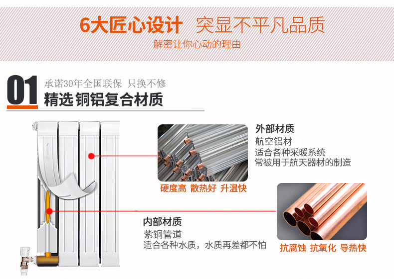 6、銅鋁復(fù)合散熱器質(zhì)保三十年。