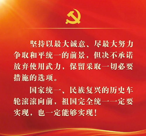 國(guó)家統(tǒng)一、民族復(fù)興的歷史車輪滾滾向前,祖國(guó)完全統(tǒng)一一定要實(shí)現(xiàn),也一定能夠?qū)崿F(xiàn)!