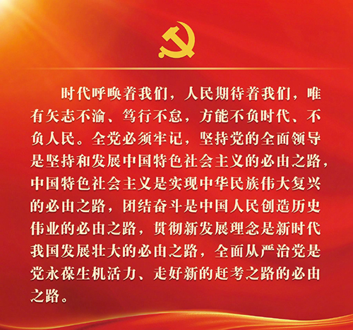 十一、時(shí)代呼喚著我們,人民期待著我們,唯有矢志不渝、篤行不怠,方能不負(fù)時(shí)代、不負(fù)人民。全黨必須牢記,堅(jiān)持黨的全面領(lǐng)導(dǎo)是堅(jiān)持和發(fā)展中國(guó)特色社會(huì)主義的必由之路,中國(guó)特色社會(huì)主義是實(shí)現(xiàn)中華民族偉大復(fù)興的必由之路,團(tuán)結(jié)奮斗是中國(guó)人民創(chuàng)造歷史偉業(yè)的必由之路,貫徹新發(fā)展理念是新時(shí)代我國(guó)發(fā)展壯大的必由之路,全面從嚴(yán)治黨是黨永葆生機(jī)活力、走好新的趕考之路的必由之路。
