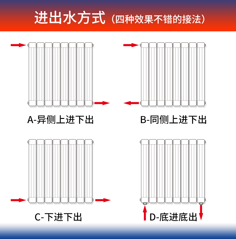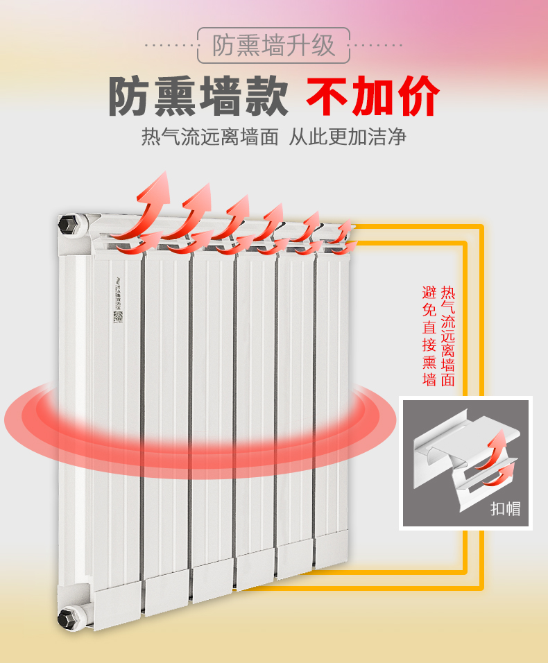 3、克服了鑄鐵散熱器承壓低、金屬熱強(qiáng)度低、裝飾性能差的缺點(diǎn);