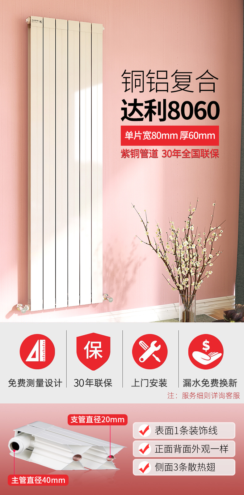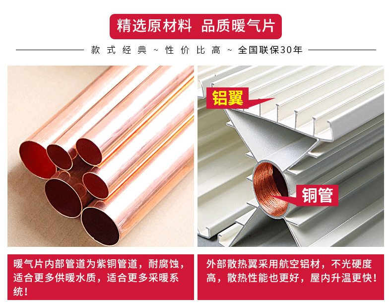 6、銅鋁復(fù)合散熱器質(zhì)保三十年;