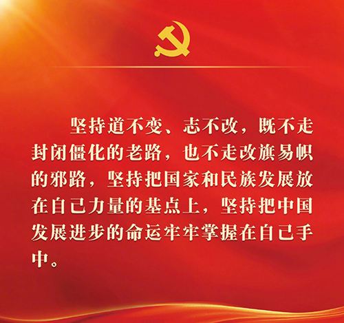 七、堅(jiān)持道不變、志不改,既不走封閉僵化的老路,也不走改旗易幟的邪路,堅(jiān)持把國(guó)家和民族發(fā)展放在自己力量的基點(diǎn)上,堅(jiān)持把中國(guó)發(fā)展進(jìn)步的命運(yùn)牢牢掌握在自己手中。